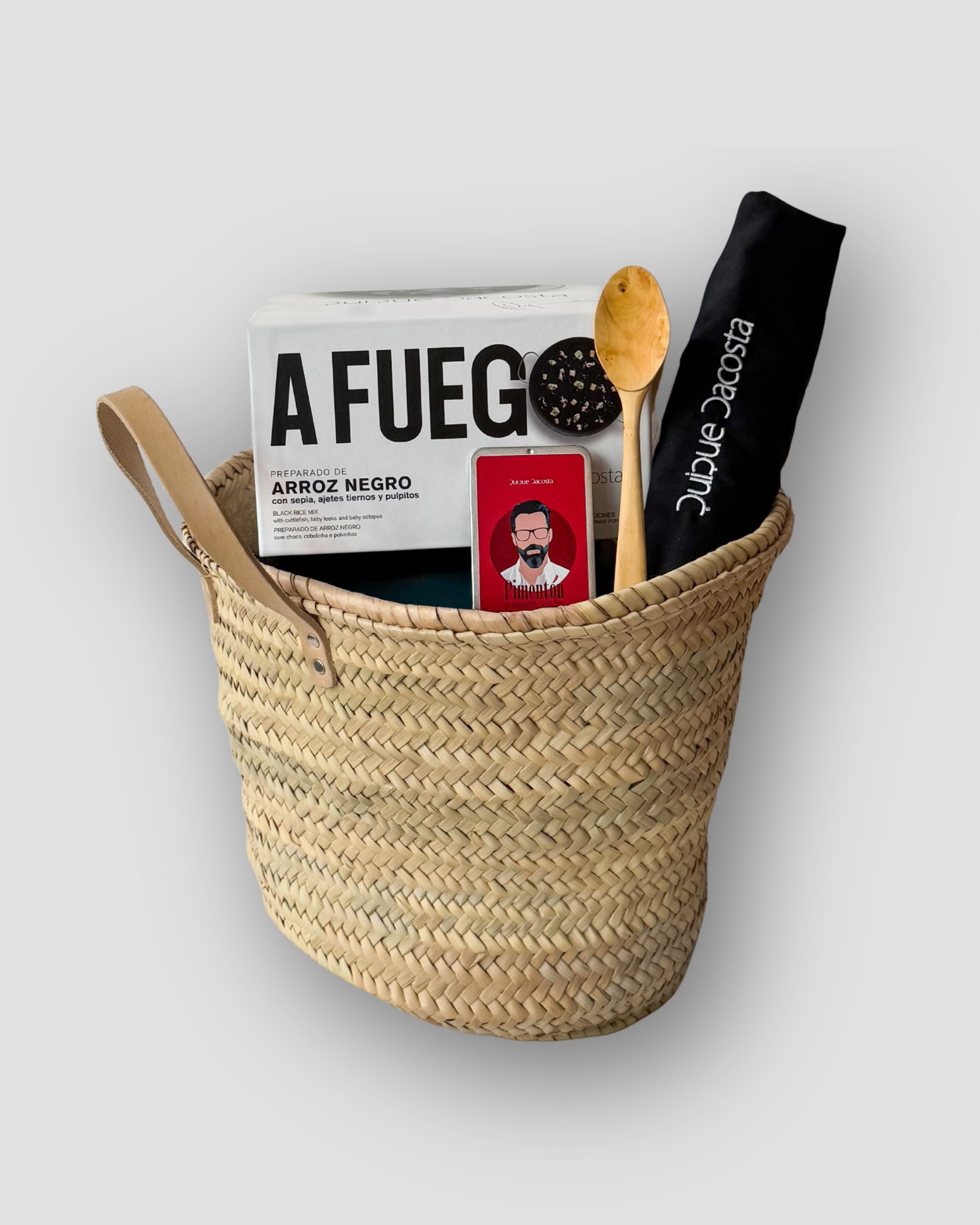 Agua, pulpo (21%), sepia (15%), ajetes tiernos (9%), caldo de pescado de roca (rape, gallinas y gallinetas (Rascasas), cintas, galeras, dorada, gallos, jurel, dentón, cangrejitos, mejillón, gallo y gallopedro), buey de mar, tomate frito (tomate, concentrado de tomate, aceite de girasol, azúcar, sal), ajos, sal, ñora, aromas naturales.